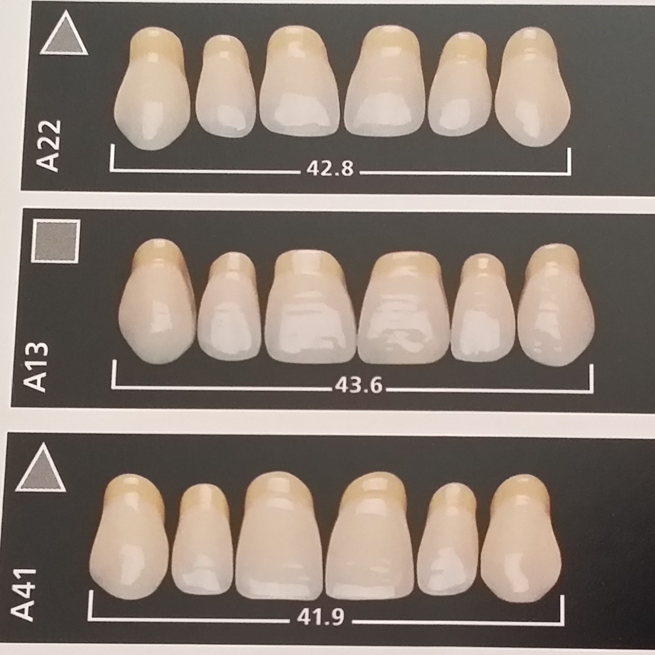 Τα δόντια που χρησιμοποιούμε στις μερικές και ολικές οδοντοστοιχιες είναι τα γερμανικά SR-VIVODENT-PE (ΠΡΟΣΘΙΑ) και SR-ORTHOTYP-PE (ΟΠΙΣΘΙΑ) της IVOCLAR.